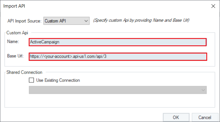 ActiveCampaign does not provide an Open API definition so we will add a request manually by using a Custom API in Astera.