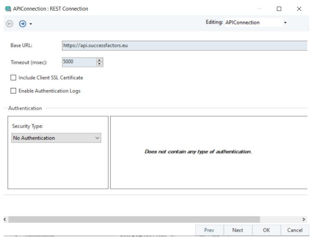 2. Configure the *API Connection* with the *Base URL* and *Authentication*.
