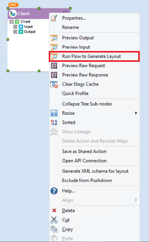 9. Right-click on the *API Client* object and select *Preview Output*.