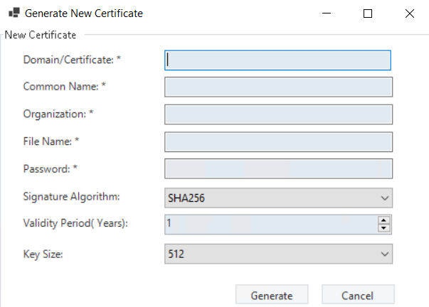 *Domain/Certificate:* The domain on which the certificate will be based.
