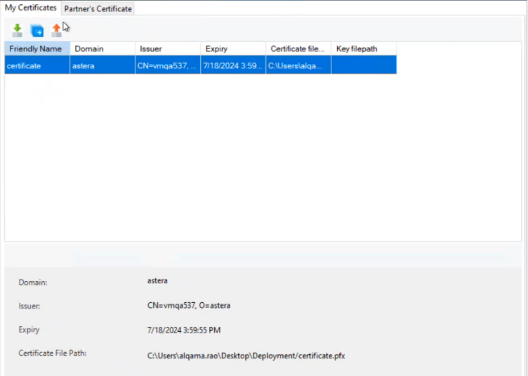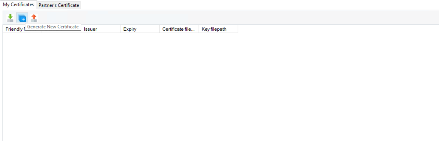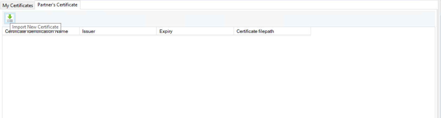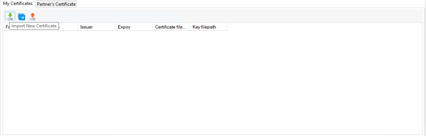 1. Select the *Partner Certificates* tab and select *Import New Certificate*.