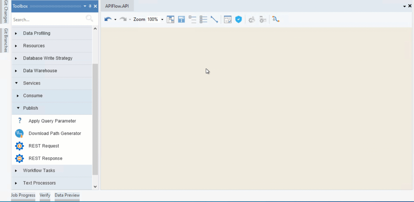 To deploy the API flow, select the third option from the right, on the designer toolbar.