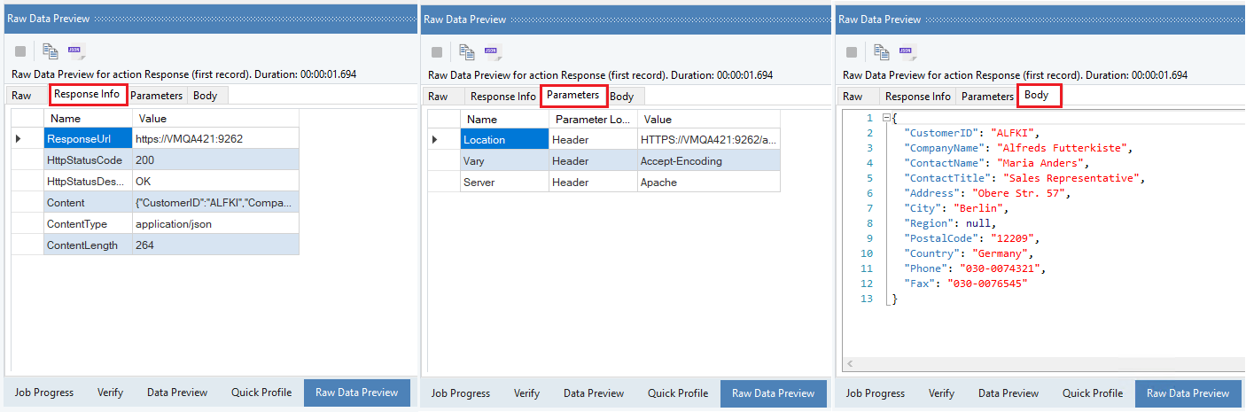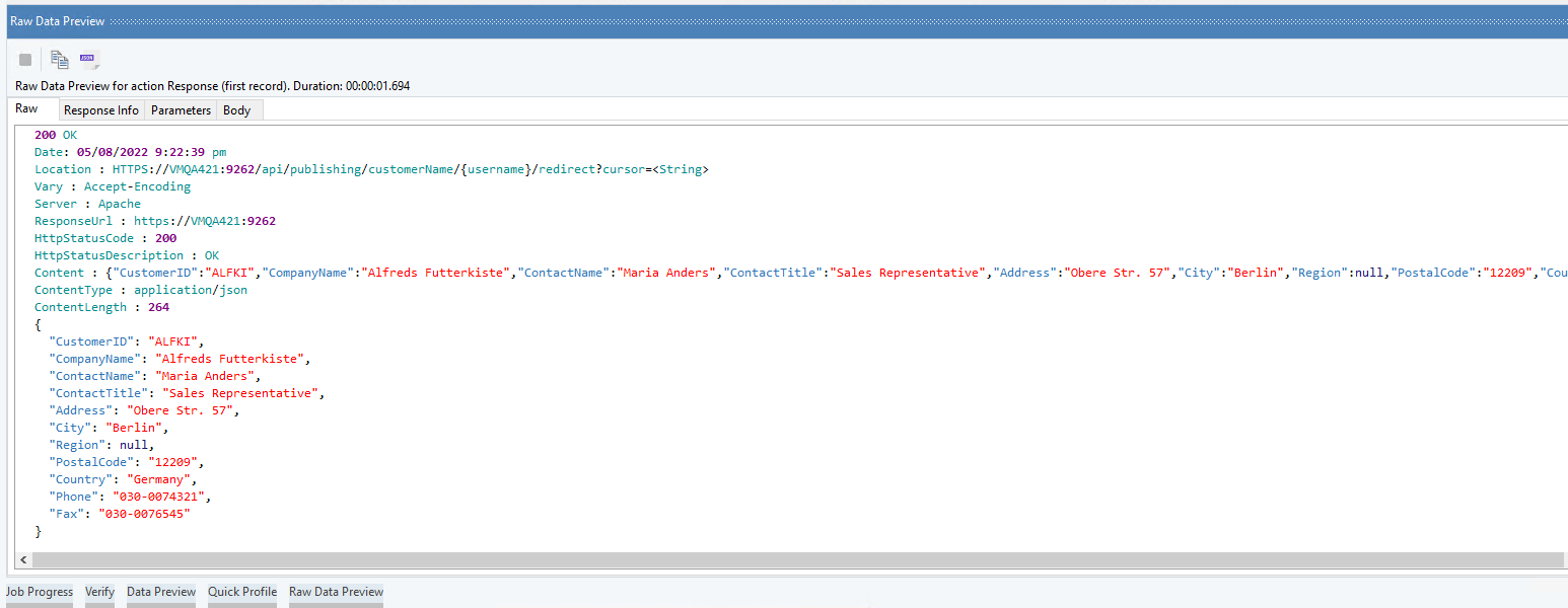 This is how the whole response looks in the Raw Data Preview,