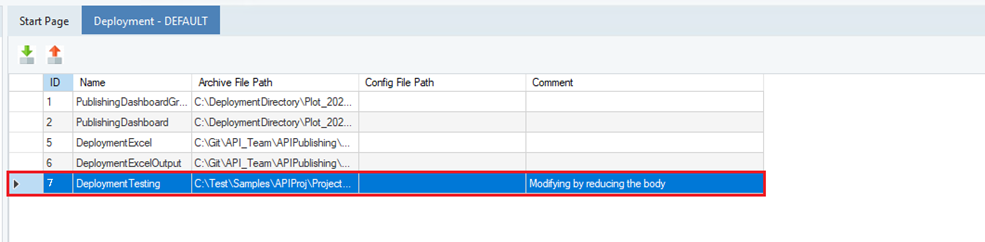 **Note:** Each time we update an existing deployment the *UpdateDtTm* field is modified as well. Therefore, we always must send a GET *api/Deployments* request first to fetch the details of the deployment and then use the received details as the body for the POST request to successfully modify the deployment. Using an invalid (past time) *UpdateDtTm* value will give a 400 Bad Request error.