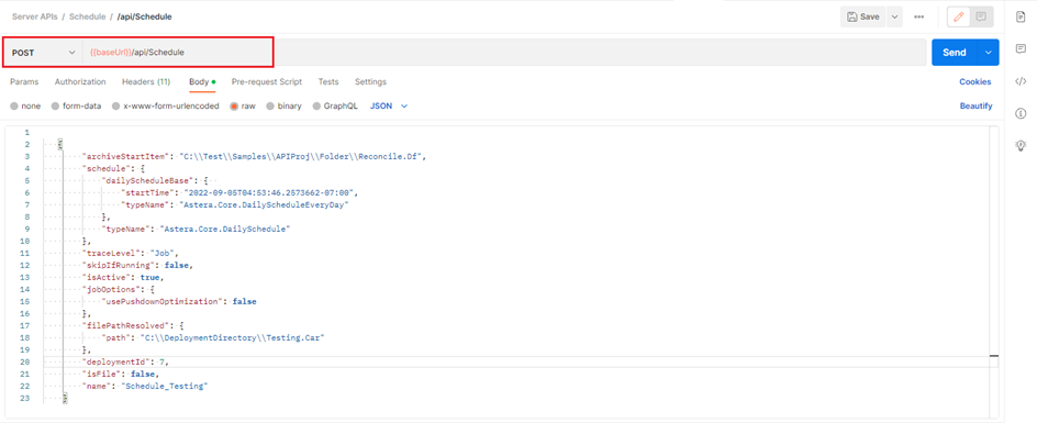 **Note:** Like the deployment POST API, this *POST api/Schedule* endpoint can also be used for modification of existing schedules.