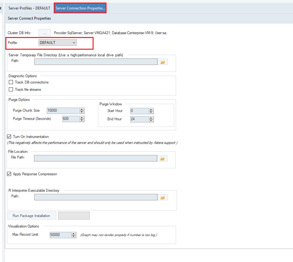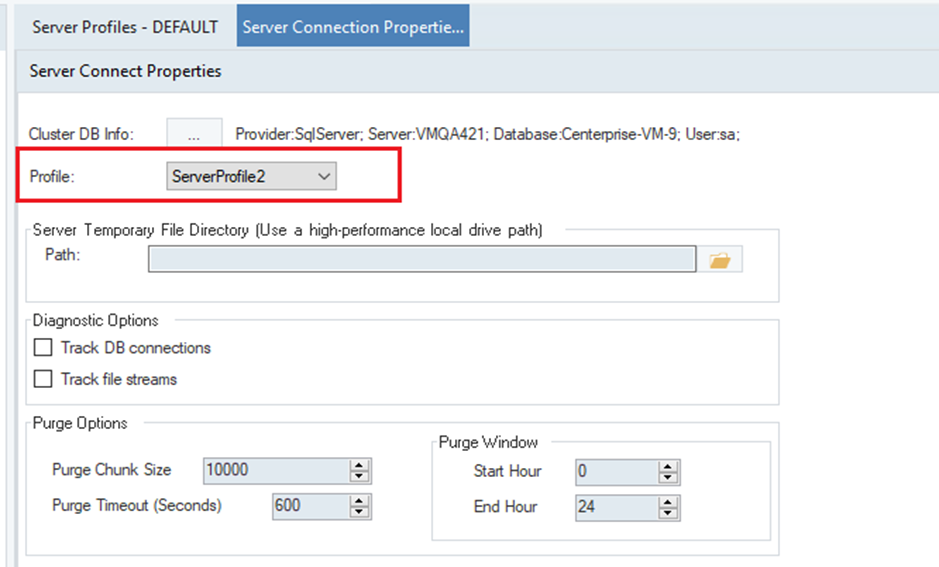 Here, we can see that a *Server Profile* named *DEFAULT* has been selected in our *Server Properties.*