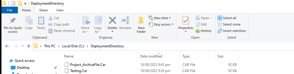 An archive file (.car file) can also be uploaded to the deployment directory via another API i.e., ‘*POST api/UploadCarFile’*.