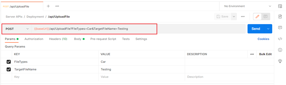 | TargetFileName: Testing               | The name with which the uploaded files will be saved                                                                                                                                                                                                                                                                                            |