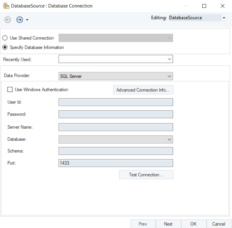 5. *Test Connection* to make sure that your database connection has been established and click *OK*.