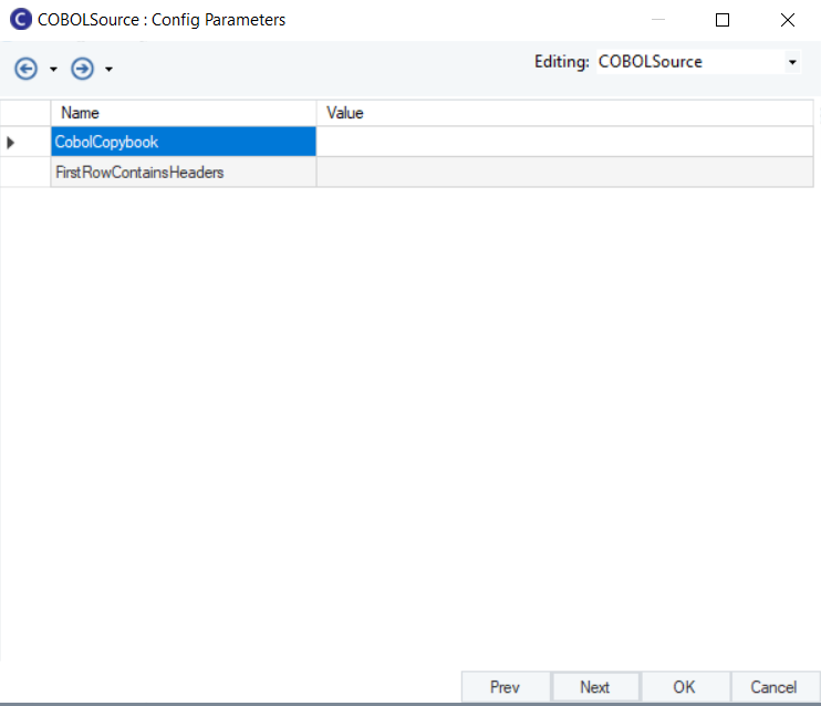 The *Config Parameters* window will now open. Here, you can further configure and define parameters for the *COBOL Source* Object.