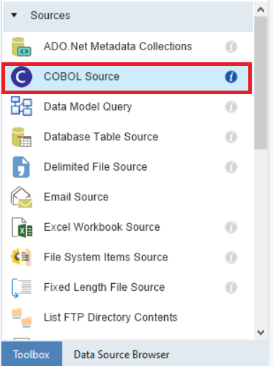 1. Expand the Sources section of the Toolbox and select the *COBOL Source* object.
