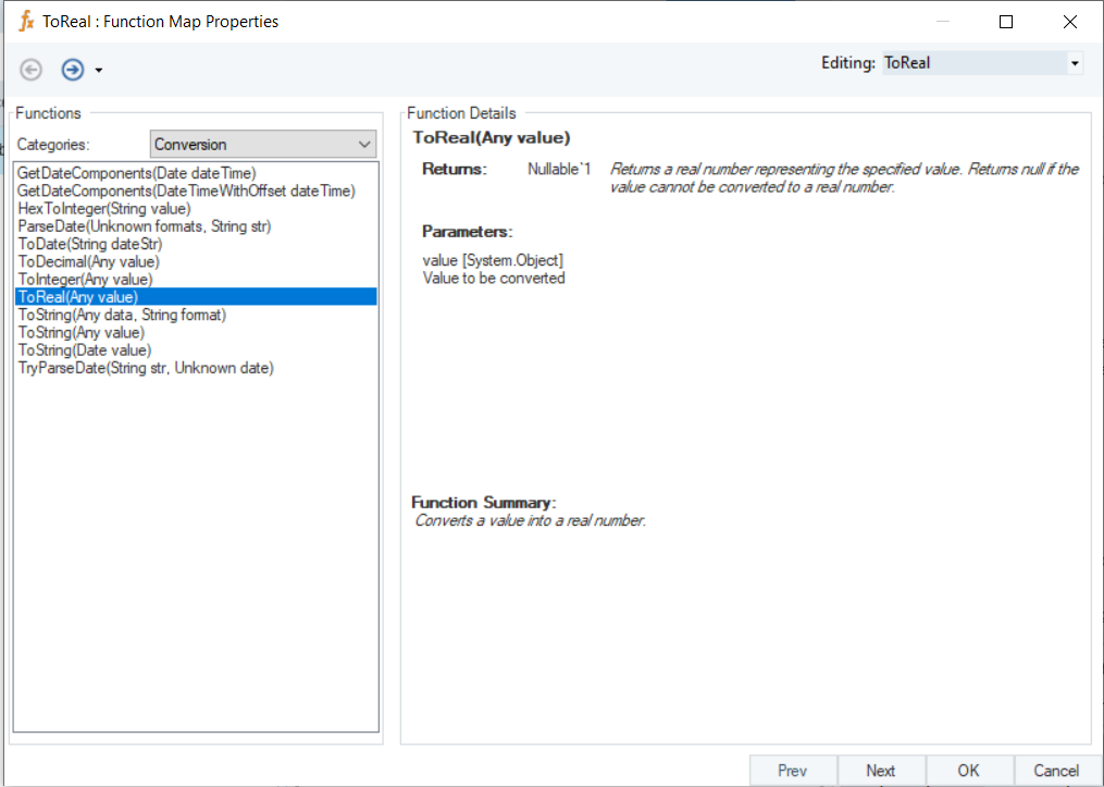 | Syntax      | ToReal (Any value)                                                                                                      |