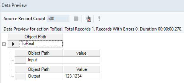 | Description | Returns a real number representing the specified value. Returns null if the value cannot be converted to a real number. |