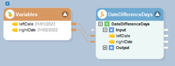 In this example, we will pass date time values to be subtracted to the function transformation object using a Variables object.
