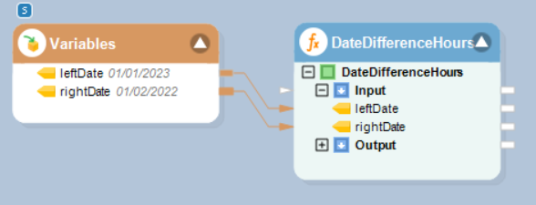 In this example, we will pass date time values to be subtracted to the function transformation object using a *Variables* object.