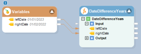 In this example, we will pass date time values to be subtracted to the function transformation object using a *Variables* object.