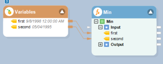 In this example, we are passing DateTime values to the function transformation object using a *Variables* object.