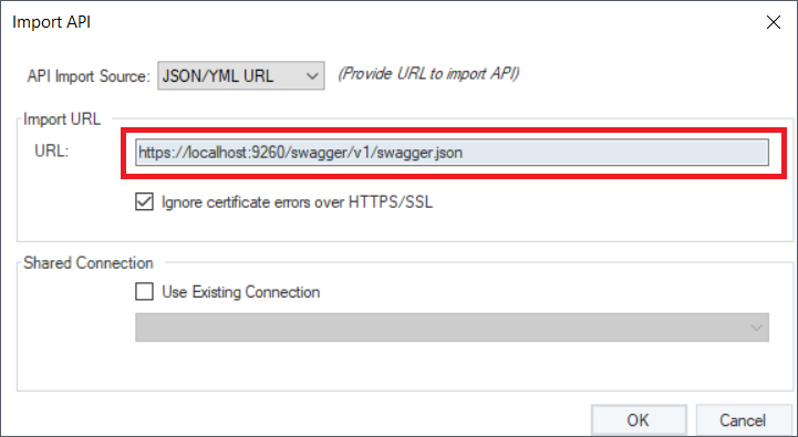 Click the Import API option in the API Browser and paste the Astera Server API path in the URL box. Then click OK.