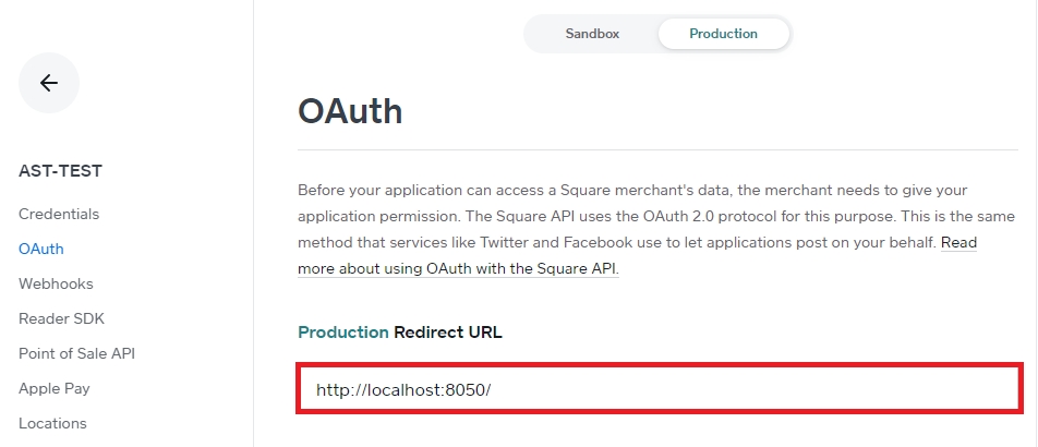 Now go to OAuth properties in Production tab. Here, you have to provide the Redirect URL for the authorization callback.