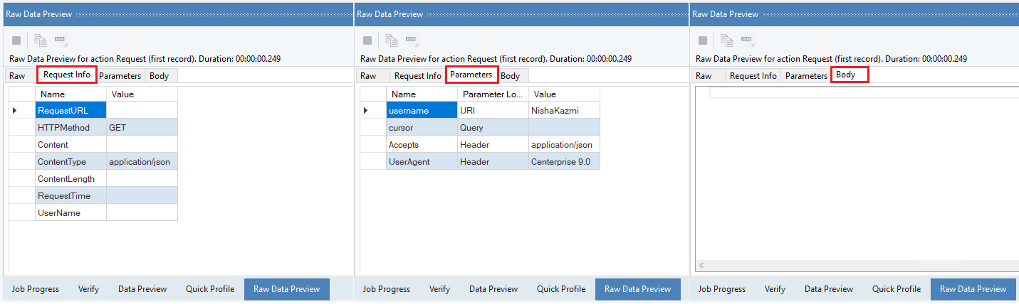 Note: Preview would only work when Request has some incoming data mapped to it.