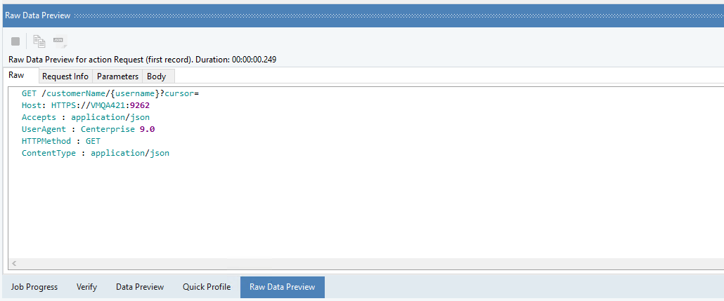 This is how a complete request looks in the Raw Data Preview window,