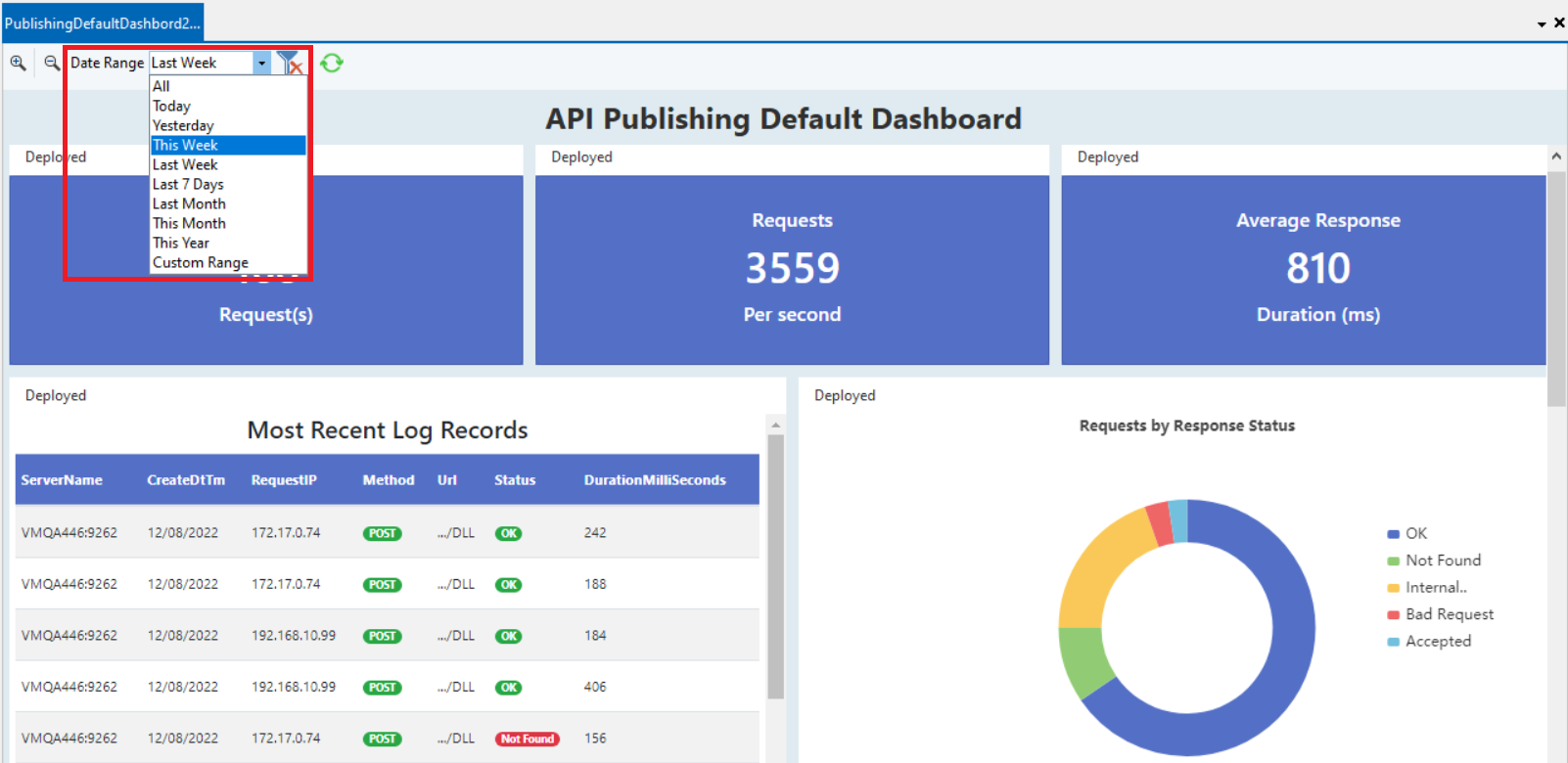 Requests by Response Status - This shows the percentage of each of the different responses for the deployed APIs.