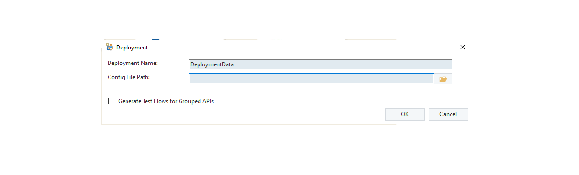 Config File Path: The path of an optional deployment config file to define runtime variables used in the API flows.