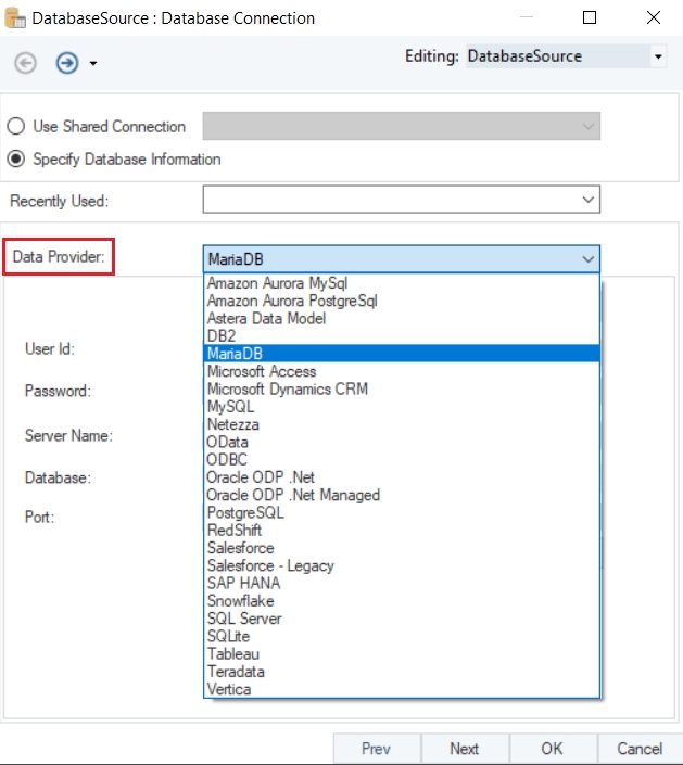 MariaDB is a database management system used for storing data in a structured format and making it accessible for use through different tools and applications. Astera offers native connectivity for MariaDB databases at both source and destination points.