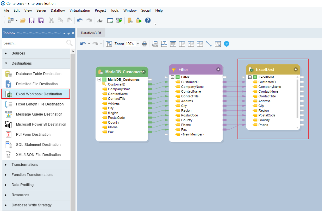 We will use the Filter transformation to filter out records of customers who are Sales Representatives.