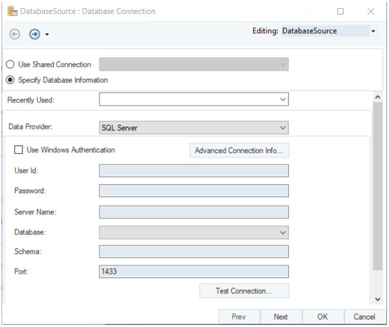 Test Connection to ensure that your connection is successful. When the connection is established, click Next.