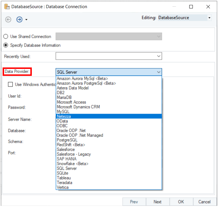 Using Netezza in Database Table Source in Astera
