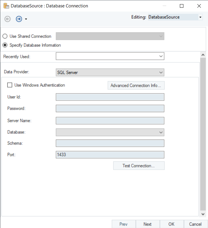 This will open a new Database Connection window where you need to provide details to configure a connection with the database.