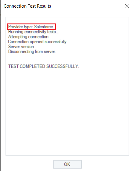 Test Connection to make sure that your connection has been established with Salesforce - Legacy database. When the connection is established, click Next.