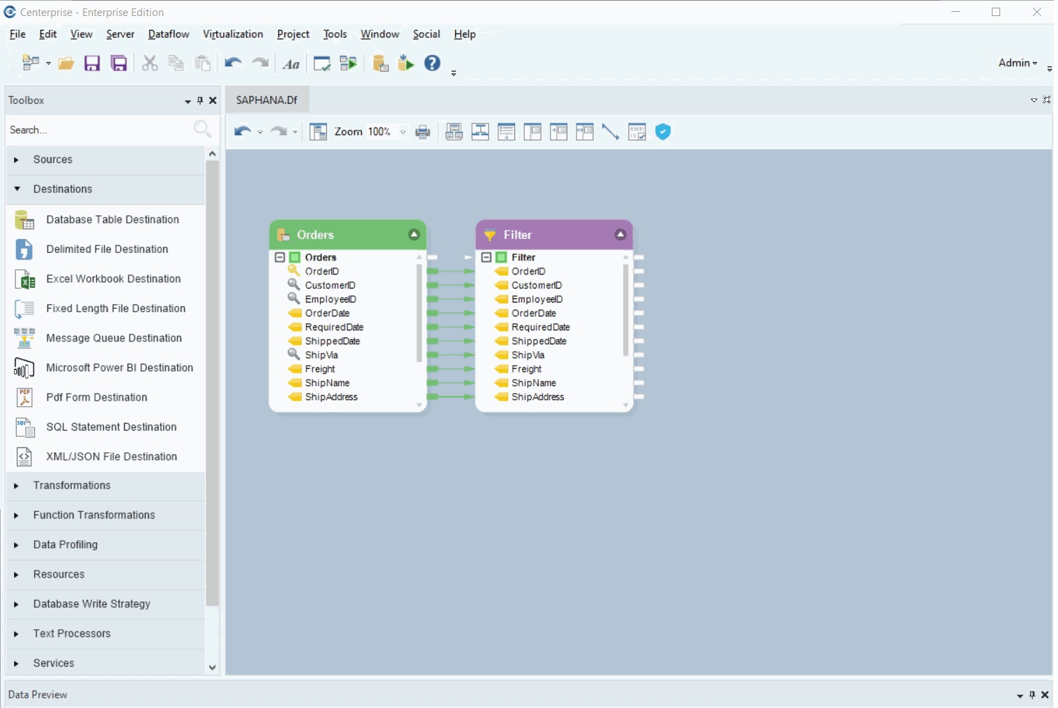 Let’s use the SAP HANA Database in an ETL process and see how it can integrate data in a dataflow.