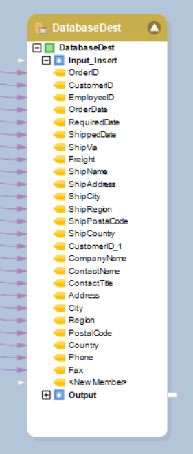 To configure the Database Table Destination object, right-click on its header and select Properties from the context menu.