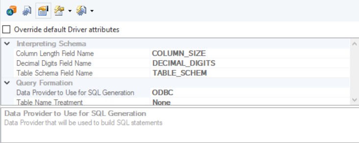 Specify Driver Attributes: This panel provides the ability to modify some attributes of the driver, which Astera has set by default. These attributes can be edited by selecting the Override default Driver attributes checkbox.