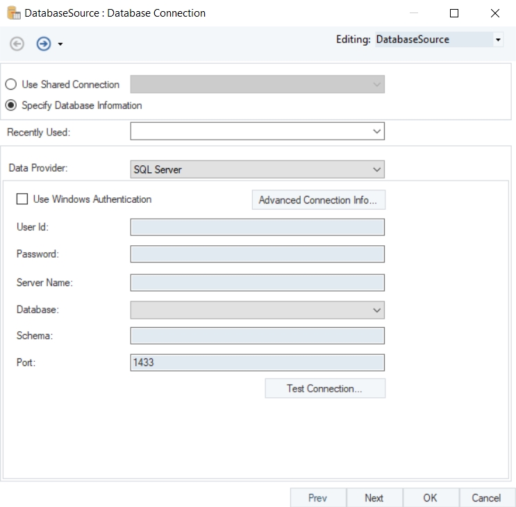 In a new dataflow, go to Toolbox > Source > Database Table Source and drag-and-drop it onto the designer.