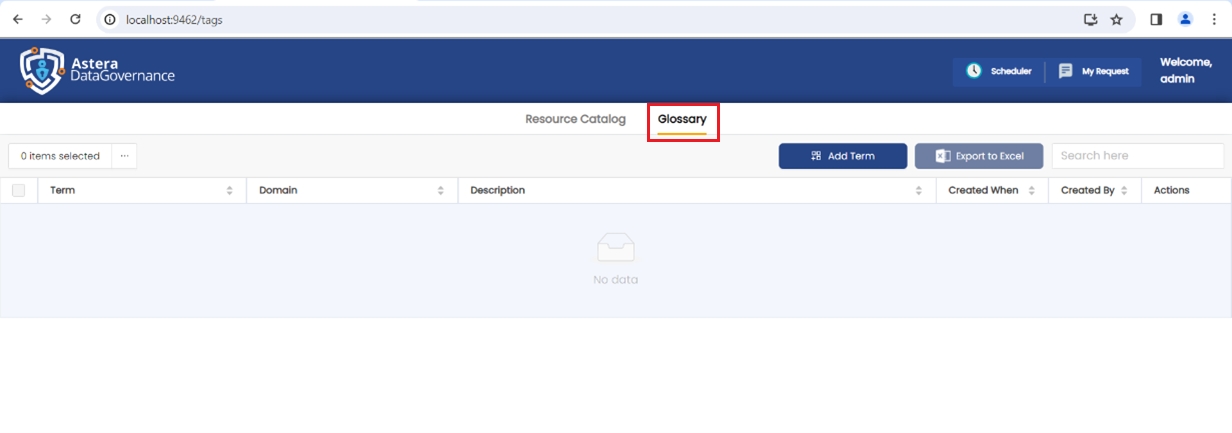 Click on the Add Term option to create a new glossary term. An empty record will be added to the grid.