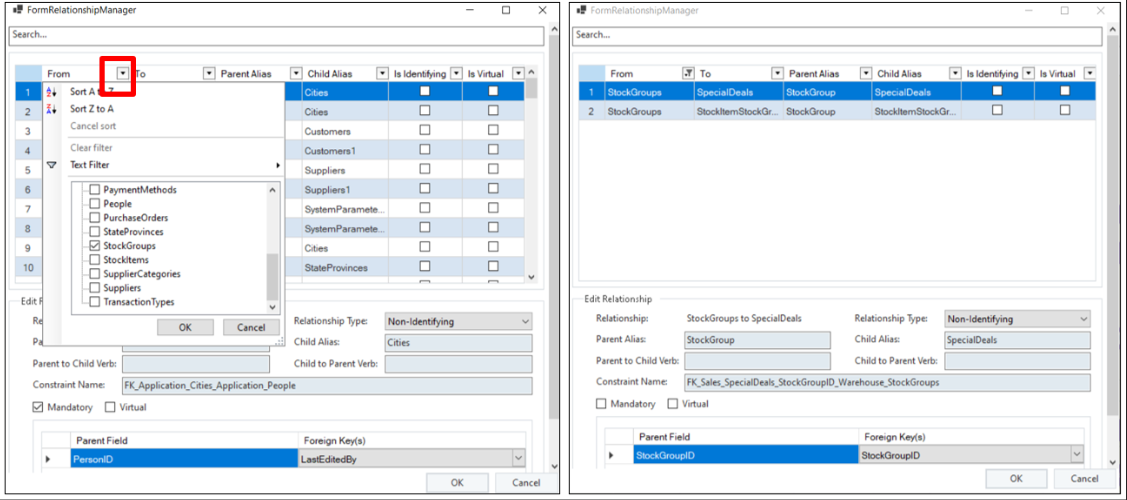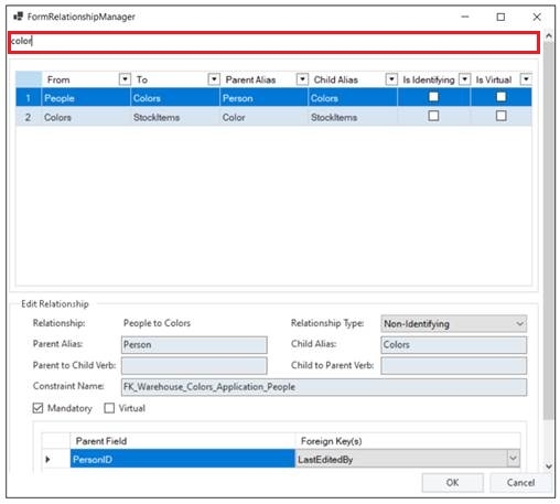 The FormRelationshipManager wizard will open, containing a list of all relationships in the data model.
