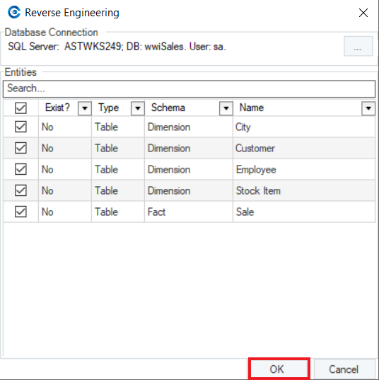 Once you’ve selected the entities for reverse engineering, click OK.