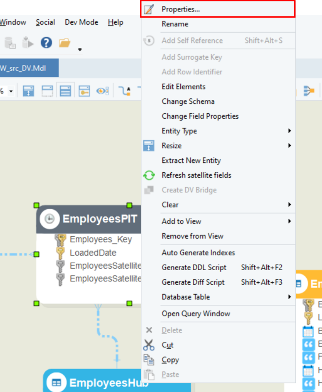 To add a PIT table to a data vault, right-click on the Hub or Link consisting of more than one Satellites and select the Create Point-in-Time entity option from the context menu.