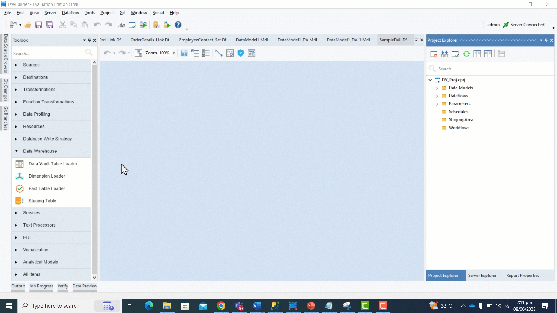 To get the Data Vault Loader object from the Toolbox, go to Toolbox > Data Warehouse > Data Vault loader.