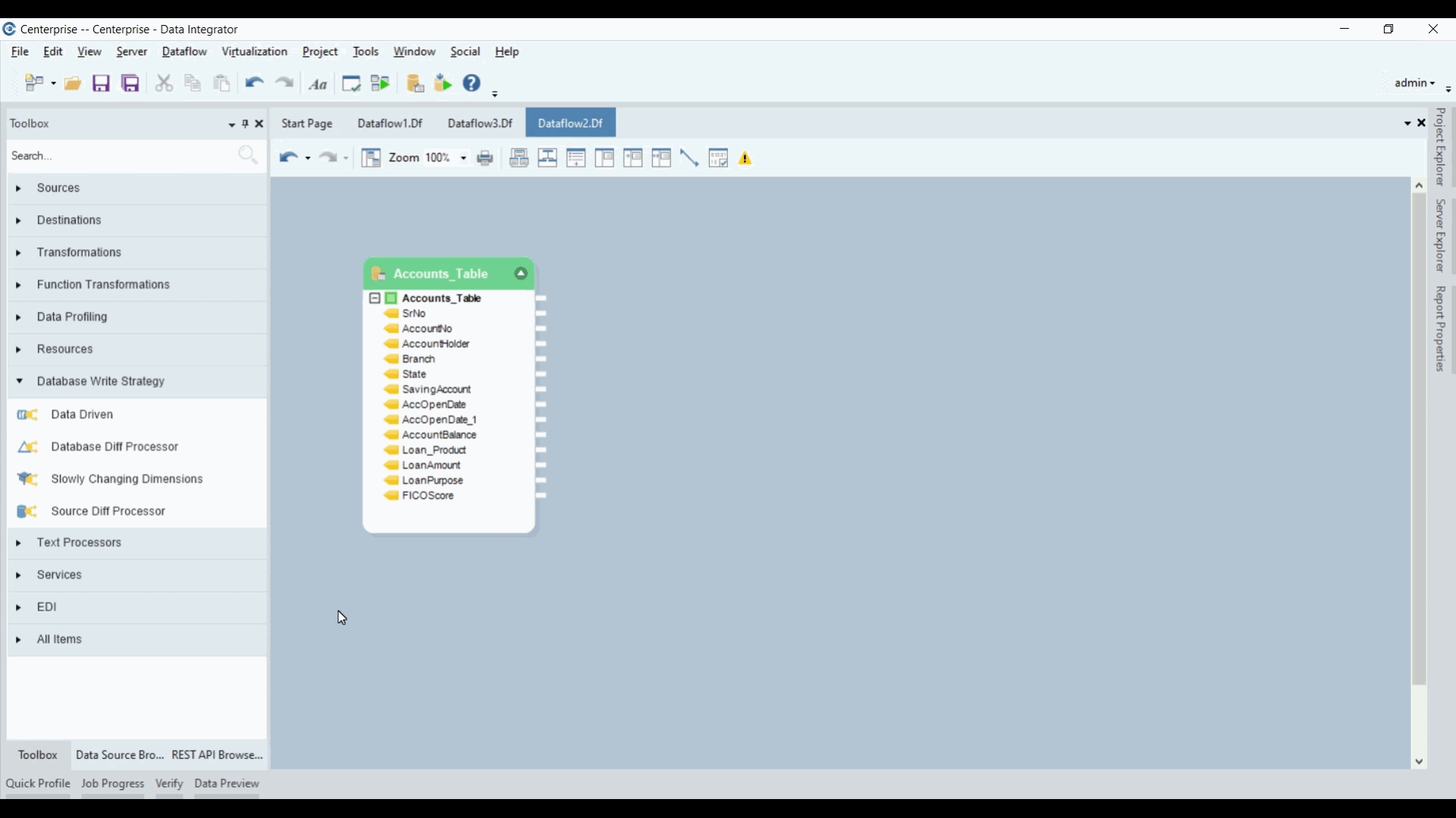 Assume a scenario in which Orders data from a Database Table Source is written to a Database Table Destination. We want to DELETE those records where ShippedDate is before the year 2000 and declare those records where Freight is less than 10 as ERROR. We will use the Data Driven write strategy object to achieve this task.