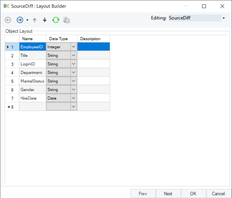 We have a sample Employees dataset coming in from an Excel Workbook Source. Initially, we had records of 10 employees but later on, 2 more were added in the source dataset. We wish to apply a database write strategy that can read the data incrementally from file sources. To achieve this, we will use the Source Diff Processor in Astera.