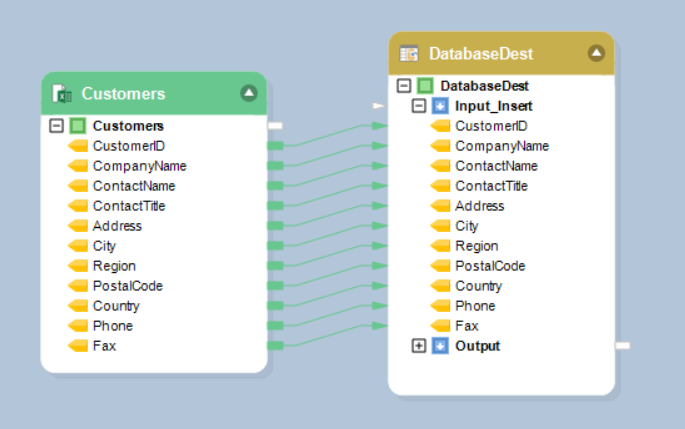 Note: In this case a Customers sample data, coming in from an Excel Workbook Source, will be written to a Database Table Destination.