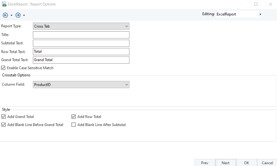 Row Totals – Check this Option if you want to add each rows total to your report.