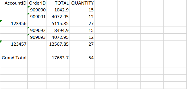 OrderID: We will select the Group By option from the Aggregate Function drop-down list for this field want to see orders within each account.