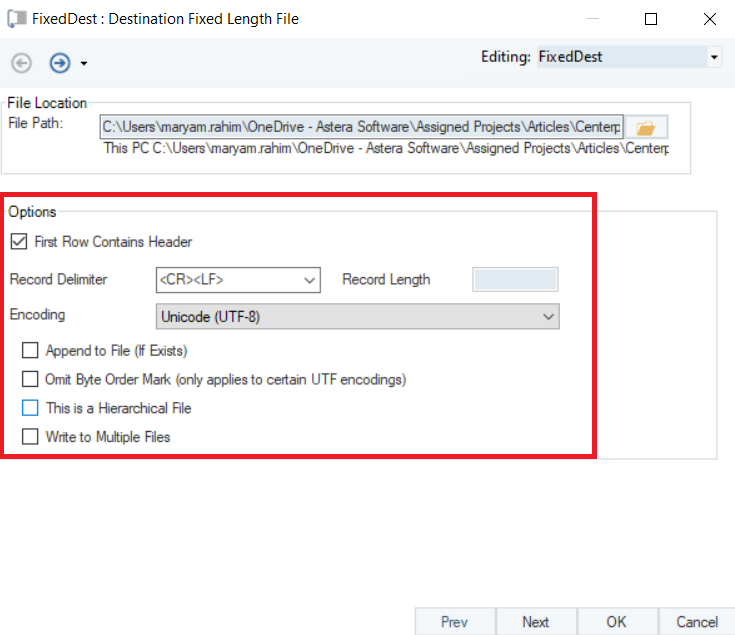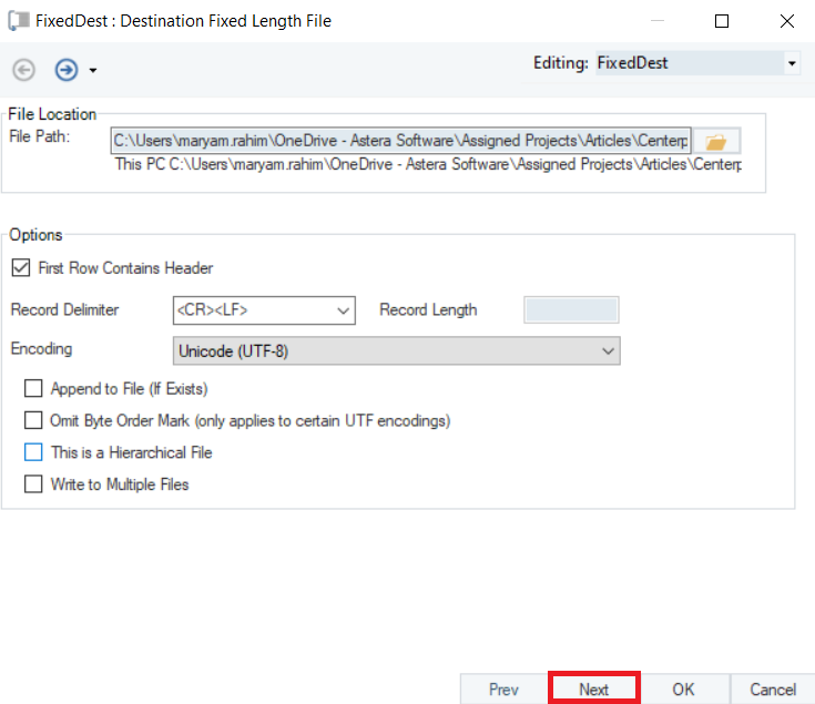 Astera’s Fixed Length File Destination provides the functionality to write data to a Fixed Length File.