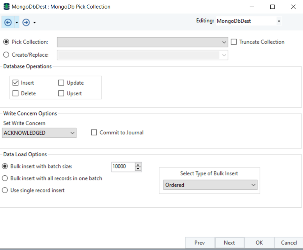 MongoDB is a document-oriented database in which one collection holds different documents. The MongoDB Destination object in Astera Data Stack, provides functionality to write data onto it. This component provides functionality to control how data should be written in collections.