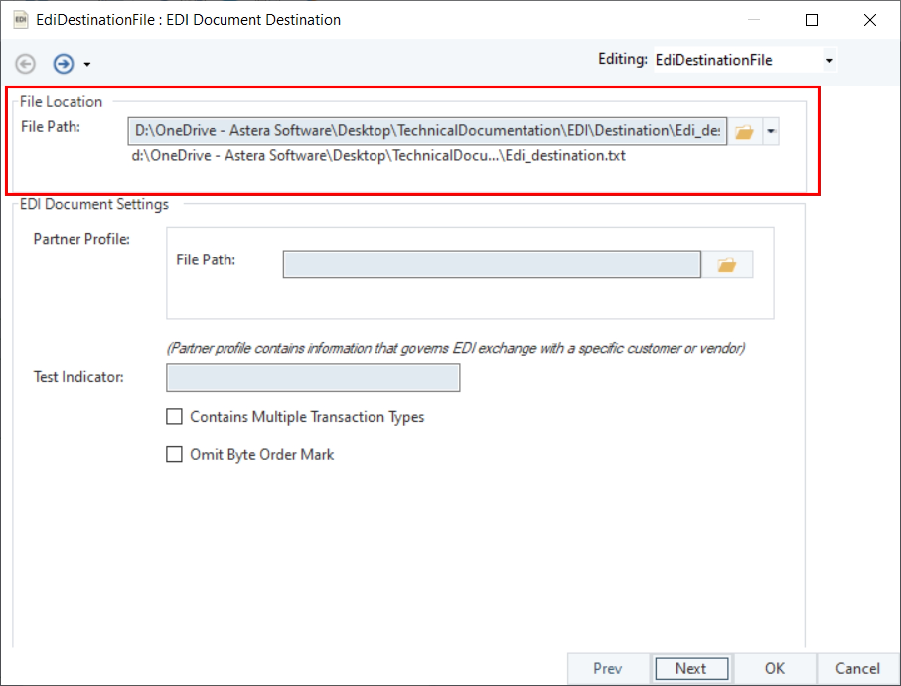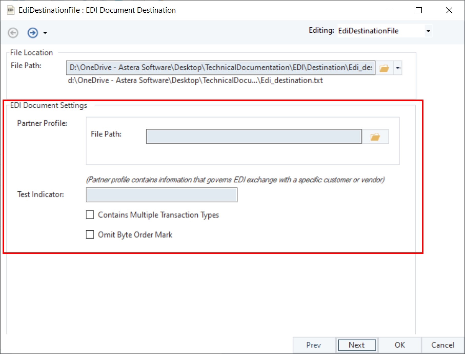 Omit Byte Order Mark – If selected, this indicates that the destination file must exclude the byte order mark from the beginning of the EDI message.